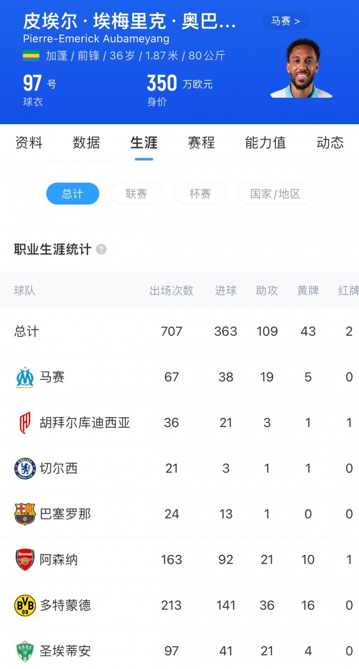 今夏追忆马赛后,奥巴梅扬本赛季16场比赛也曾孝顺了8球7助攻。当今36岁的奥巴梅扬德回身价为350万欧元,而在2018年巅峰技术,效能于阿森纳的奥巴梅扬身价最高曾达到7500万欧元。