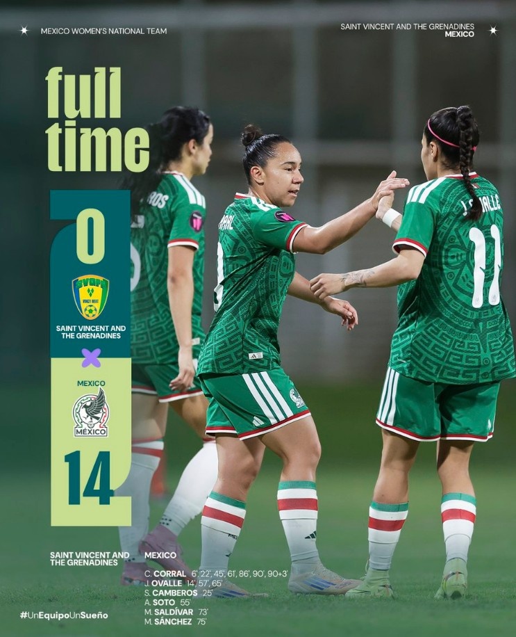 天下杯预选赛墨西哥女足14-0狂胜,科拉尔一东谈主打进7球