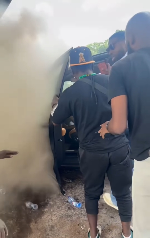 万幸!玉昆外助奥斯卡开车时车辆发火所幸东谈主没事,车子已烧成残缺