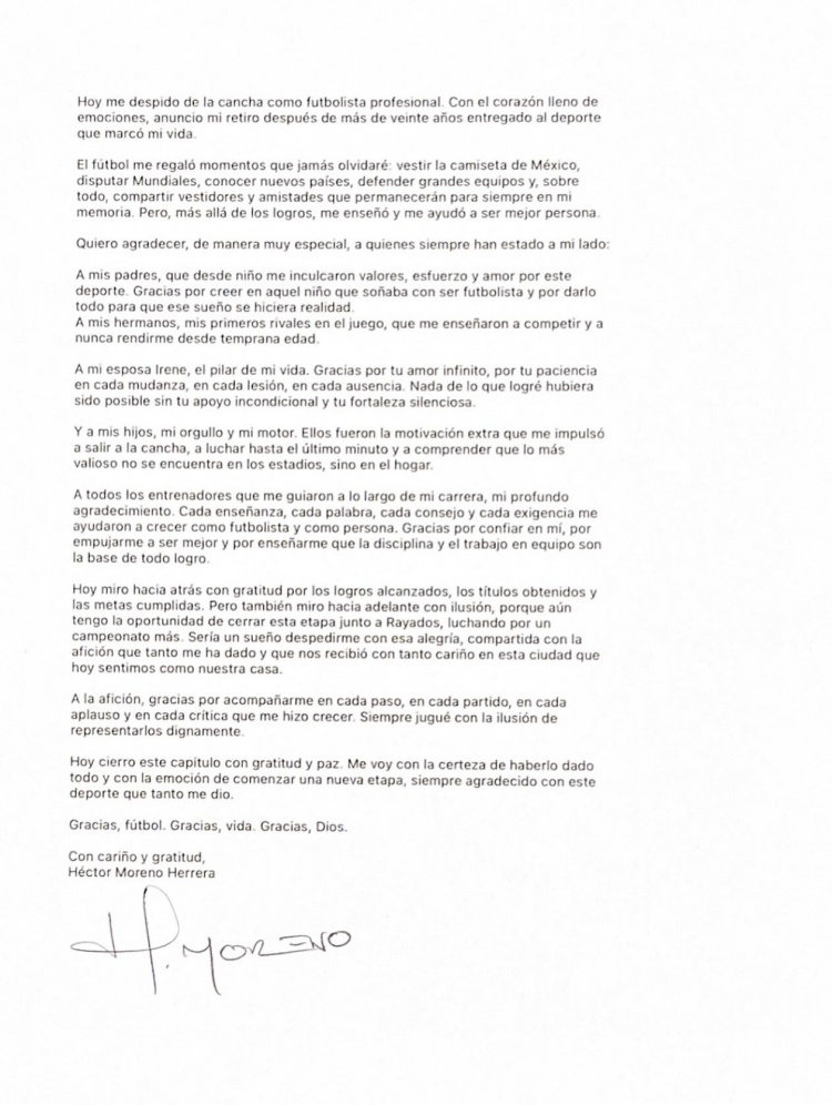 37岁中卫埃克托-莫雷诺秘书退役,为墨西哥队出战132场比赛