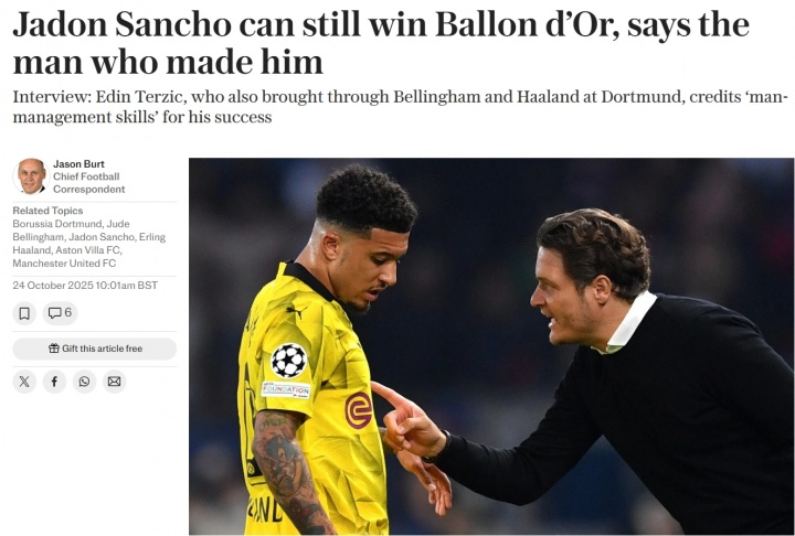10月24日讯 英媒《逐日电讯报》采访了前多特主帅泰尔皆奇,聊到了多名他曾同事过的高身价球员。其中关于桑乔,泰尔皆奇暗示“他也还有获得金球奖的契机”。