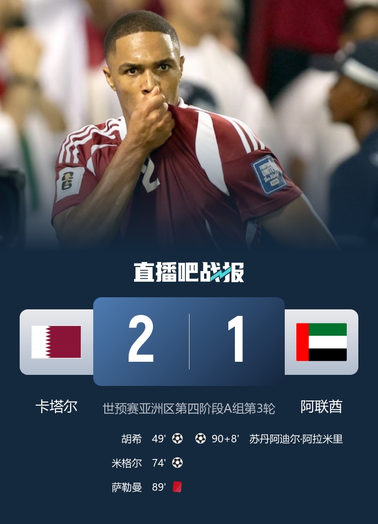 11月08日讯 FIFA官方公布了世初赛的处理着力,辞世初赛亚洲区第四阶段末轮比赛中,卡塔尔2-1打败阿联酋纵贯天下杯,阿联酋国度队诓骗查赫里因进犯比赛官员等活动,遭重罚禁赛16场。