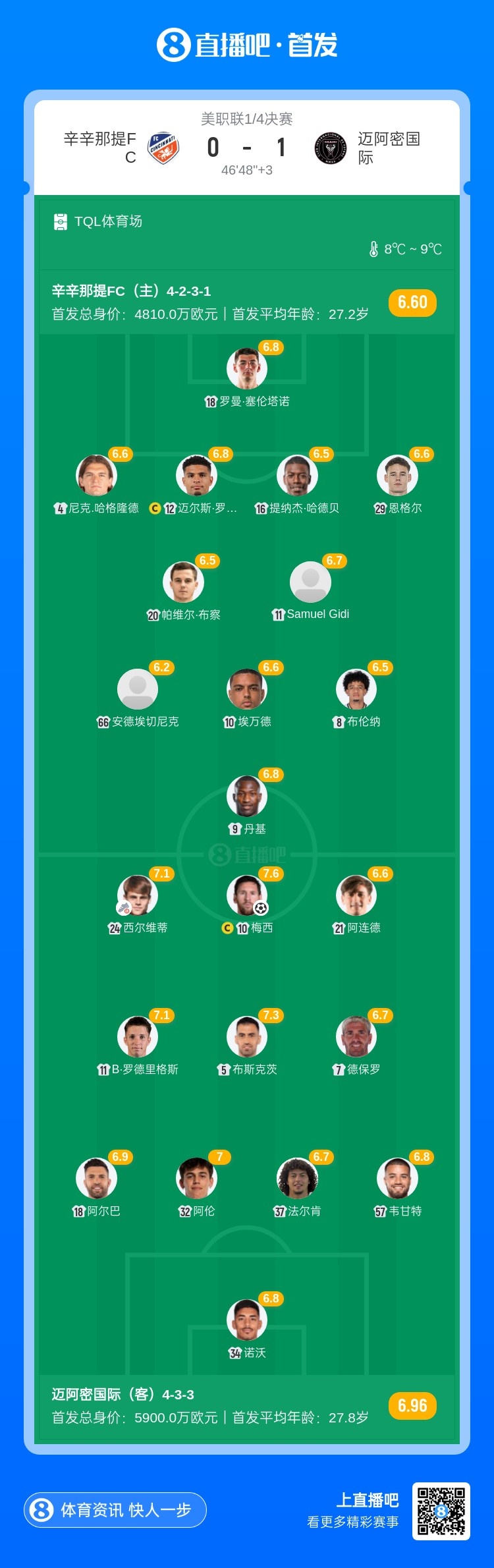 11月24日讯 北京时代6:00,好意思职联1/4决赛辛辛那提FCvs迈阿密海外。上半场,梅西头球破门!西尔维蒂献助攻。半场驱散,迈阿密海外暂时1-0跳跃辛辛那提FC。