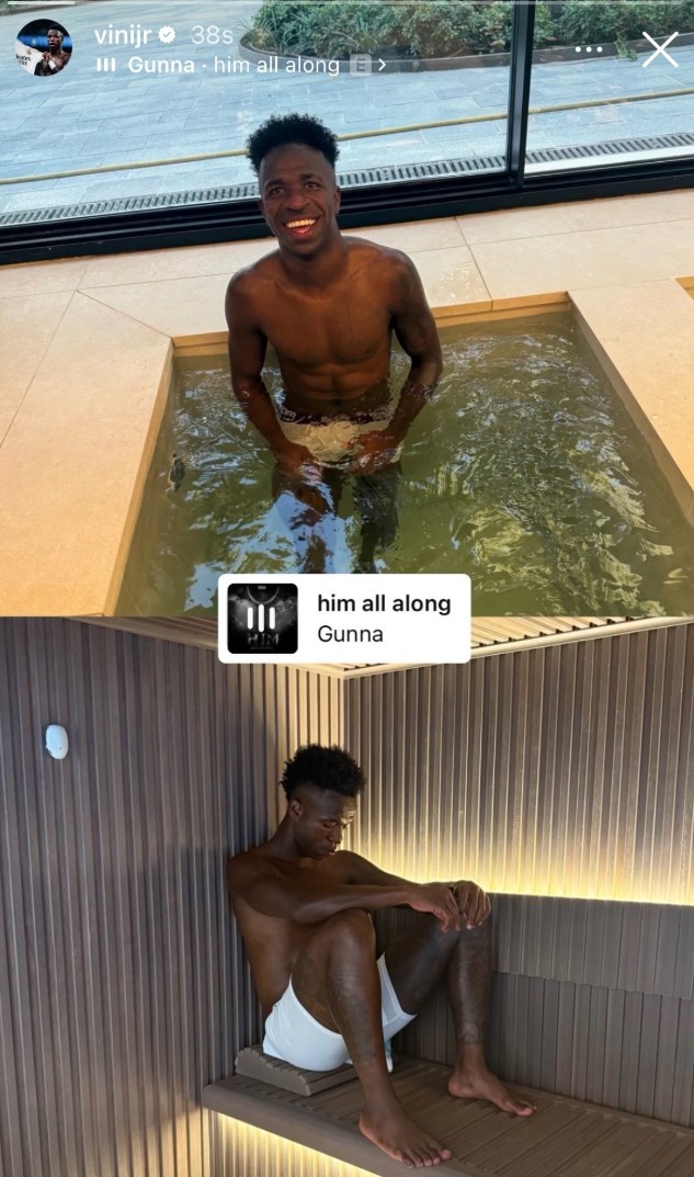 维尼修斯此前社媒晒出的泳池和桑拿房