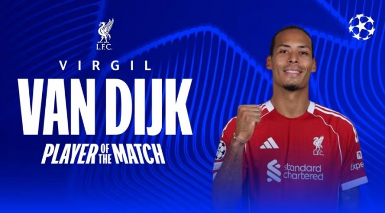 1进球6突围,范戴克当选利物浦5-1客胜法兰克福全场最好球员