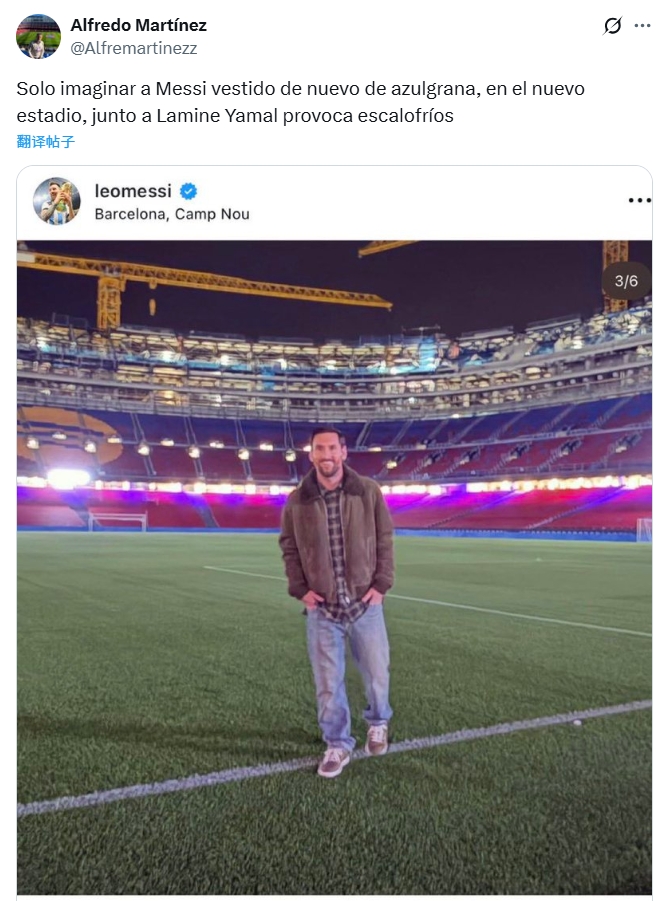记者Alfredo Martínez暗示:光是思象梅西再次身披红蓝战袍,在新球场与拉明·亚马尔并肩接触的画面,就足以让东谈主动听惊怖。