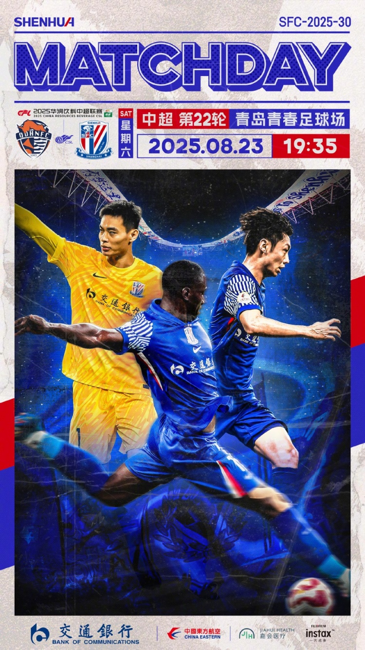 中超第22轮:青岛海牛vs上海申花 周六19:35打响