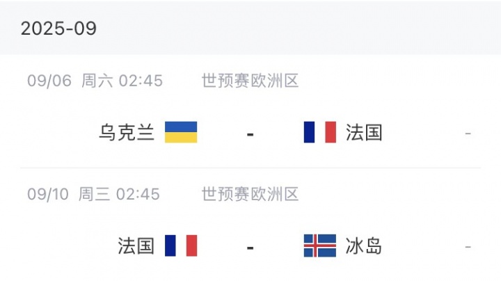法国国度队将在9月的世欧预中对阵乌克兰和冰岛,小组第又名将径直晋级2026年全国杯。