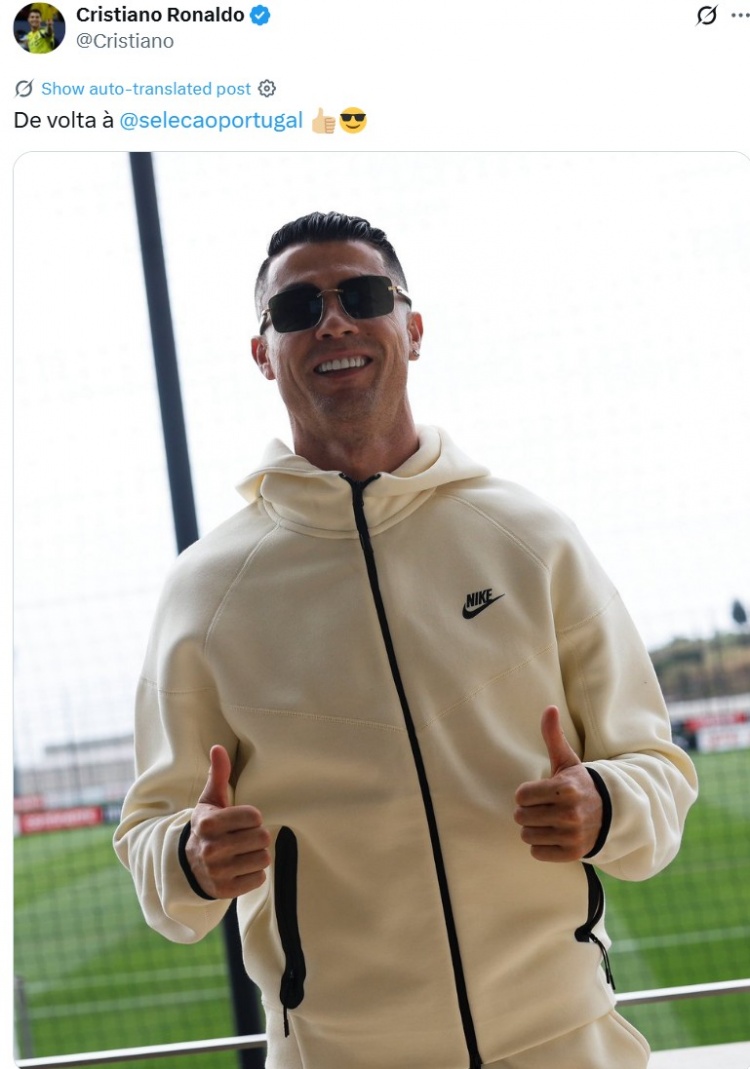 C罗社媒晒回到葡萄牙国度队报谈像片,戴墨镜出镜帅气豪阔