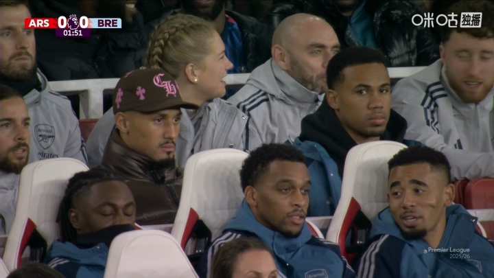 还在养伤!萨利巴、加布里埃尔身穿闲静服在替补席不雅战